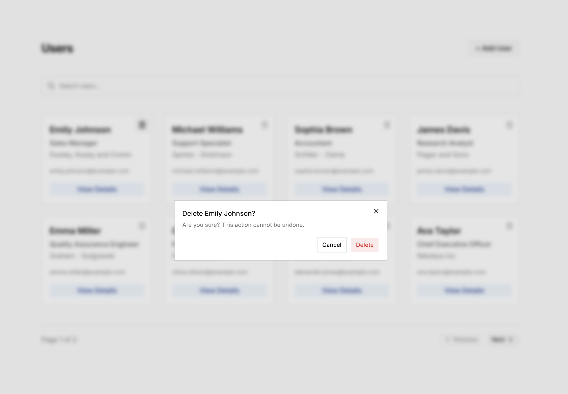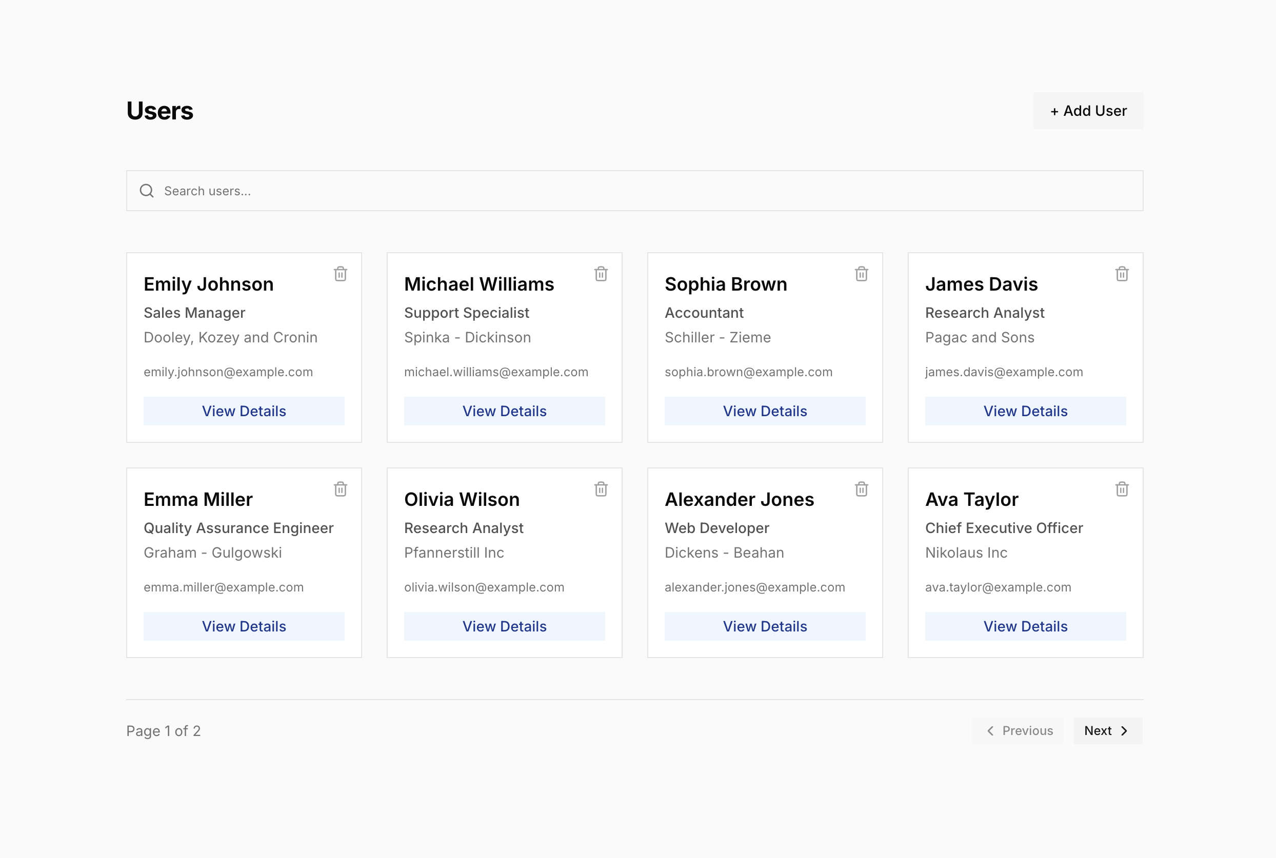 In this course, you’ll build an application that fetches and displays a list of users on the home page. Each user card has a View Details link that takes you to that user’s detail page. The application includes features to add new users and delete existing ones. It also supports search and pagination.